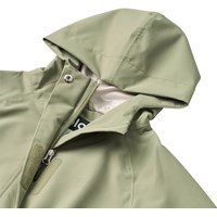 Groene wind- en waterdichte jas gemaakt van gerecycled polyester met een zachte, matte afwerking. De jas heeft een afneembare capuchon, rits met beschermende flap, verstelbaar klittenband rond de polsen, grote voorzakken met flappen en verstelbaar elastiek in de taille voor een betere pasvorm. Een functioneel en stijlvol model voor wisselvallig weer.