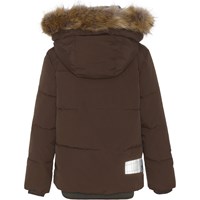 Herbert is een bruine winterjas met een afneembare capuchon met een afneembare rand van imitatiebont. Het heeft een afgedekte ritssluiting aan de voorkant en stormflappen aan de mouwen en onderkant. De jas is gevoerd met technisch dons, pearl padding genoemd, waardoor het extra zacht is, warmte vasthoudt en donsachtig aanvoelt. Dit product heeft een waterbestendige, PFC-vrije oppervlaktebehandeling (Bevat bijvoorbeeld geen PFOS, PFOA, etc). Waterkolomdruk: 10.000 mm. Ademend: 8.000 g/m2/24u.