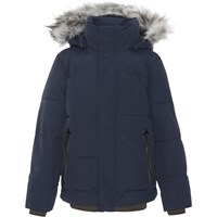 Herbert is een donkerblauwe winterjas met een afneembare capuchon met een afneembare rand van imitatiebont. Het heeft een afgedekte ritssluiting aan de voorkant en stormflappen aan de mouwen en onderkant. De jas is gevoerd met technisch dons, pearl padding genoemd, waardoor het extra zacht is, warmte vasthoudt en donsachtig aanvoelt. Dit product heeft een waterbestendige, PFC-vrije oppervlaktebehandeling (Bevat bijvoorbeeld geen PFOS, PFOA, etc). Waterkolomdruk: 10.000 mm. Ademend: 8.000 g/m2/24u.