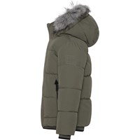 Herbert is een donkergroene winterjas met een afneembare capuchon met een afneembare boord van imitatiebont. Het heeft een ritssluiting aan de voorkant met een overslag en stormflappen aan de mouwen en onderkant. Het is gemaakt van een ademende, wind- en waterdichte kwaliteit en gevoerd met pearl padding, waardoor het extra zacht is, warmte vasthoudt en een donsachtig gevoel geeft. De jas is gemaakt van een ademende en wind- en waterdichte stof. Dit product heeft een waterbestendige, PFC-vrije oppervlaktebehandeling (bevat bv. geen PFOS, PFOA, enz.). Waterkolomdruk: 3.000 mm. ademend: 3.000 g / m2 / 24 uur.