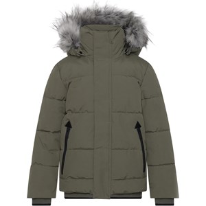 Herbert is een donkergroene winterjas met een afneembare capuchon met een afneembare boord van imitatiebont. Het heeft een ritssluiting aan de voorkant met een overslag en stormflappen aan de mouwen en onderkant. Het is gemaakt van een ademende, wind- en waterdichte kwaliteit en gevoerd met pearl padding, waardoor het extra zacht is, warmte vasthoudt en een donsachtig gevoel geeft. De jas is gemaakt van een ademende en wind- en waterdichte stof. Dit product heeft een waterbestendige, PFC-vrije oppervlaktebehandeling (bevat bv. geen PFOS, PFOA, enz.). Waterkolomdruk: 3.000 mm. ademend: 3.000 g / m2 / 24 uur.