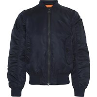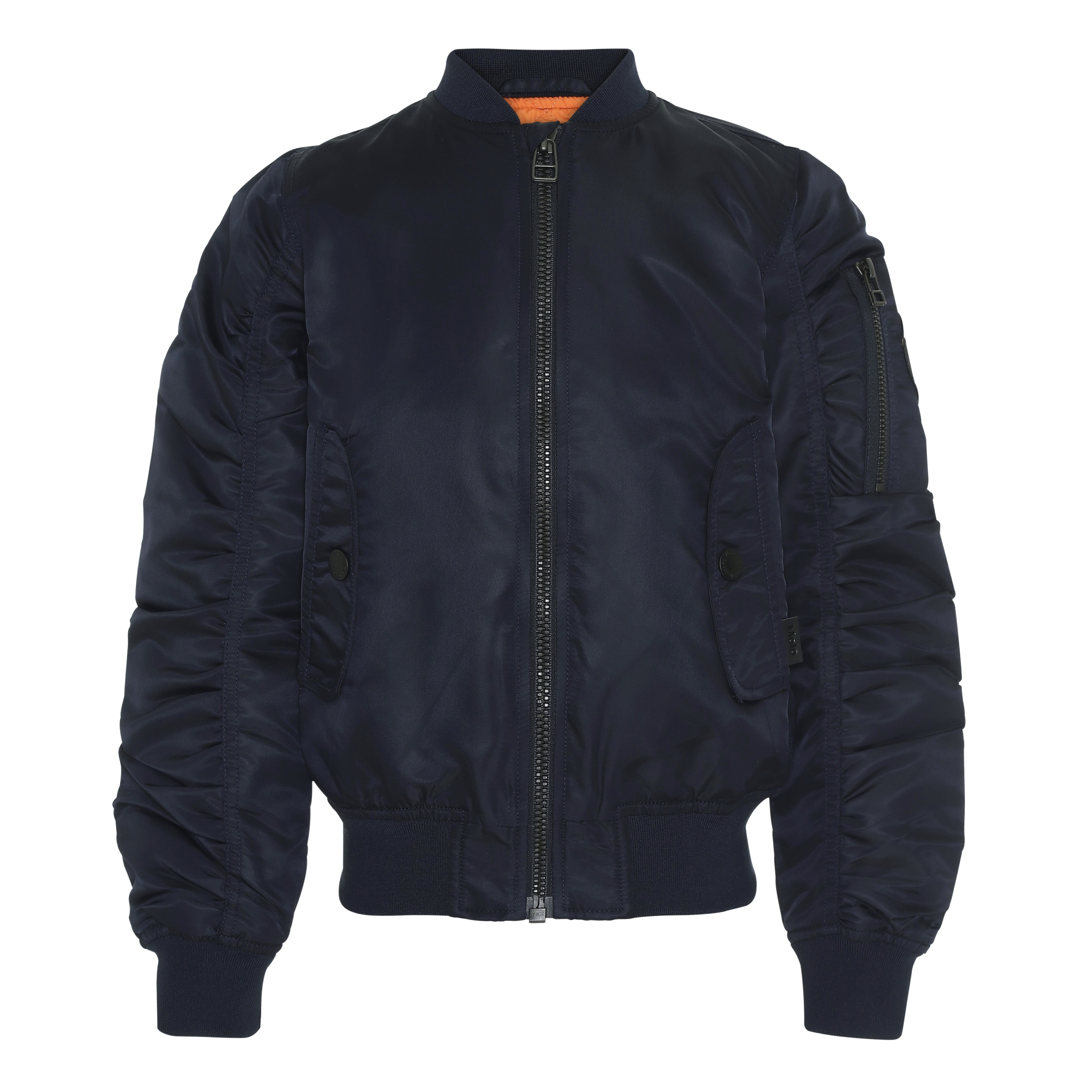 Hiker is een sportieve functionele donkerblauwe bomberjas met een ritssluiting en gerimpelde mouwen. Hiker heeft praktische zakken aan de voorzijde en een ritsvak op één mouw.