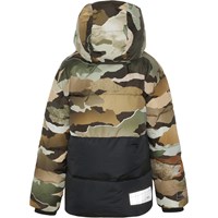 Hilo is een winterjas in een camouflageprint met een ritssluiting aan de voorkant. De jas heeft een hoge kraag en reflectoren op de achterkant. Hilo is gevoerd met technisch dons, dat heet pearl padding, waardoor het extra zacht is, warmte vasthoudt en donsachtig aanvoelt. Dit product heeft een waterbestendige, PFC-vrije oppervlaktebehandeling (Bevat bijvoorbeeld geen PFOS, PFOA, etc). Waterkolomdruk: 5.000 mm. Ademend: 5.000 g/m2/24u.