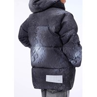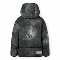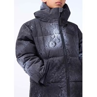 Warme en functionele jas gemaakt van gerecycled polyester met ritssluiting, hoge kraag en afneembare capuchon. De jas is ontworpen met voorzakken, een binnenzak, ribboorden rond de mouwen en een verstelbare elastiek aan de onderkant om effectief te beschermen tegen de wind. Aan de achterkant bevindt zich een grote reflector die de zichtbaarheid in het verkeer vergroot. De jas is gevoerd met zachte, gerecyclede polyester vulling, wat zorgt voor comfort en optimale warmte-isolatie. Op de jas staat een reflecterende print van de ruwe structuren van de maan die oplicht wanneer het licht erop valt. Kenmerken: Wind- en waterafstotend. Waterkolomdruk: 20.000 mm. Ademend vermogen: 20.000 g/m2/24u. PFC-vrij (PFOS en PFOA). Reflector voor verhoogde zichtbaarheid in het verkeer. Afneembare capuchon. Sneeuwvanger in de mouwen. Gevoerd met gerecyclede polyester vulling voor optimale warmte.