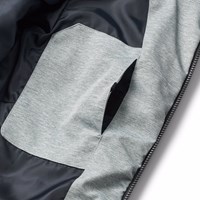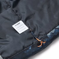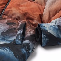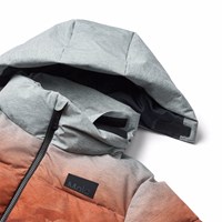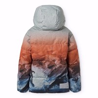 Warme en functionele jas met ritssluiting, hoge kraag en afneembare capuchon. De jas is ontworpen met voorzakken, een binnenzak, ribboorden rond de mouwen en een verstelbare elastiek aan de onderkant om te beschermen tegen de wind. Er is een grote reflector op de achterkant die de zichtbaarheid in het verkeer vergroot. De jas is gevoerd met zacht, gerecycled polyester vulling voor een comfortabele en optimale thermische isolatie. De jas is gemaakt in tinten grijs, oranje en blauw met een print van snowboarders in de Alpen.