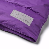 Paarse gewatteerde jas van gerecycled polyester voor een koude winter. De jas heeft een afneembare capuchon, zijzakken en mouwen met geribbelde manchetten, die effectief wind, sneeuw en regen buiten houden en ervoor zorgen dat handschoenen op hun plaats blijven. De jas heeft een grote reflector op de achterkant om de zichtbaarheid in het verkeer te vergroten.