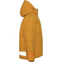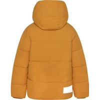 Hilo is een goud mosterdkleurige praktische winterjas die is gemaakt van 59% gerecycled nylon van afval. Het heeft zakken met een ritssluiting en een reflector aan de achterkant. De jas is gevoerd met parelvulling, waardoor het extra zacht is en warmte vasthoudt, terwijl het toch een donsachtig gevoel geeft. De buitenstof heeft een waterbestendige, PFC-vrije oppervlaktebehandeling (bevat geen PFOS, PFOA, enz.).