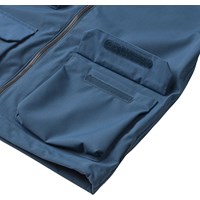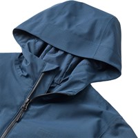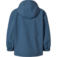 Donkerblauwe functionele jas die wind- en waterdicht is, gemaakt van gerecycled nylon met een ton-sur-ton geruite structuur. De jas heeft een afneembare capuchon, grote voorzakken met contrasterende klep en klittenbandsluiting, en is verstelbaar bij de polsen. Een duurzame en praktische keuze voor buitenspelen.