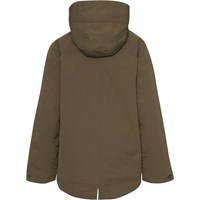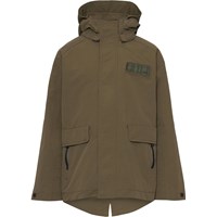 Hood is een kakigroene jas die perfect is voor wisselend zomerweer of als overgangsjas. Het heeft een afneembare capuchon, grote voorzakken en is langer aan de achterkant.