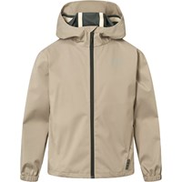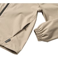 Zandkleurige, lichte en waterdichte jas gemaakt van gerecycled polyester. De jas heeft praktische ritssluitingen, elastische manchetten en een verstelbaar trekkoord aan de onderkant. Perfect voor het tussenseizoen.