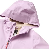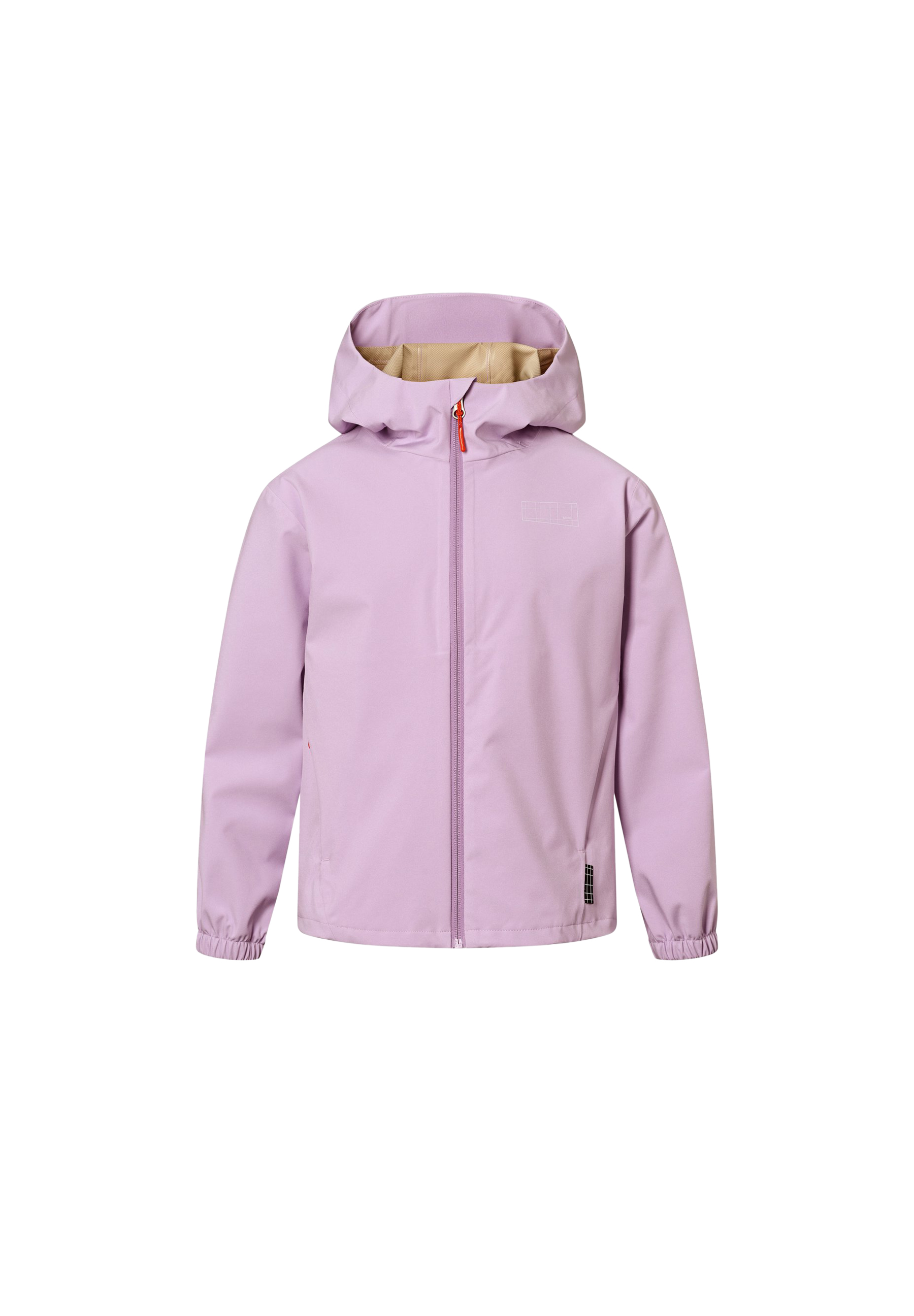 Paarse, lichte en waterdichte jas gemaakt van gerecycled polyester. De jas heeft praktische ritssluitingen, elastische manchetten en een verstelbaar trekkoord aan de onderkant. Perfect voor het tussenseizoen.