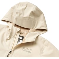 Beige lichtgewicht en waterdichte jas gemaakt van gerecycled polyester. De jas heeft praktische ritszakken, elastische manchetten en een verstelbaar trekkoord aan de onderkant. Perfect voor het tussenseizoen.