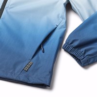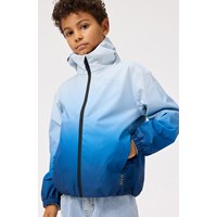 Wind- en waterdichte jas met capuchon van gerecycled polyester in verschillende tinten blauw. De jas heeft een normale pasvorm, voorzakken met ritsen, verstelbare elastiek aan de onderkant, elastiek bij de mouwen, waterdichte naden en een rits met stormflap om droog te blijven.