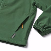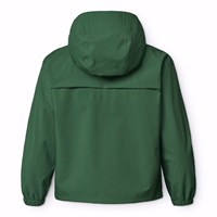 Groene wind- en waterdichte jas met capuchon van gerecycled polyester. De jas heeft een normale pasvorm, voorzakken met ritsen, verstelbare elastiek aan de onderkant, elastiek bij de mouwen, waterdichte naden en een rits met stormflap om droog te blijven.