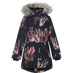 Peace is een zwarte functionele en waterdichte parka winterjas met tulpenprint. Peace is perfect voor extreem koude dagen maar ook voor gewone winterdagen. Het hoge ademende vermogen helpt de lichaamstemperatuur van het kind te reguleren, zodat het niet te koud of oververhit raakt. Op warmere winterdagen kan het kind de jas met een dunne onderlaag dragen en op extreem koude dagen kan je een extra laag aantrekken. Ook voor minder actieve momenten is Peace een goede keuze. De jas heeft een afneembare capuchon met imitatiebont (ook afneembaar), een afgedekte ritssluiting, verstelbare manchetten met stormflappen en drie voorzakken. Het heeft elastiek aan de achterkant voor een meer getailleerde look. De jas is wind-, waterdicht, ademend en heeft getapete naden. De buitenstof is gemaakt van 45% gerecycled polyester, de 3M™ Thinsulate™ voering is gemaakt van 78% gerecycled polyester en de binnenstof is gemaakt van 100% gerecycled polyester. Dit product heeft een waterbestendige, PFC-vrije oppervlaktebehandeling (bevat geen bijv. PFOS, PFOA, enz.). kolomdruk: 15.00 0 mm. Ademend: 15.000 g/m2/24u.