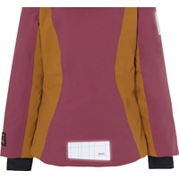 Pearson Recycle is een functionele, vrouwelijke ski jas in bordeaux rood met mosterdkleurige details. Pearson heeft een afneembare capuchon, een ritssluiting aan de voorkant met een asymmetrische sluiting, zijzakken, verstelbare mouwopeningen met windflappen en duimgaten en reflecterende strepen op de mouwen. De jas is wind- en waterdicht, ademend en gevoerd met 3M ™ Thinsulate ™. Het heeft hoogwaardige fleece op kwetsbare plaatsen en getapete naden. Het buitenmateriaal is gemaakt van 59% gerecycled nylon uit afval. Dit product heeft een waterbestendige, PFC-vrije oppervlaktebehandeling (bevat geen PFOS, PFOA, enz.). Waterkolomdruk: 15.000 mm. Ademend vermogen: 15.000 g / m2 / 24 uur.