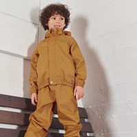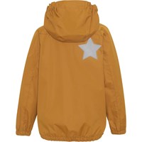 Waiton is een lichtgewicht en functionele goudgele regenjas met nylon voering. Waiton heeft een afgedekte ritssluiting ter bescherming tegen wind en regen. Het heeft getapete naden, een afneembare capuchon en twee voorzakken. De jas heeft Molo's iconische sterreflector op de achterkant zodat het kind in het donker beter zichtbaar is. Deze regenkleding heeft als groot voordeel dat het ademend is, zodat bij een hoog activiteitsniveau de jas van binnen niet nat wordt. Dit product heeft een waterbestendige, PFC-vrije oppervlaktebehandeling (bevat bijvoorbeeld geen PF OS, PFOA, enz.). Waterkolomdruk: 5.000 mm. ademend: 5.000 g/m2/24u.