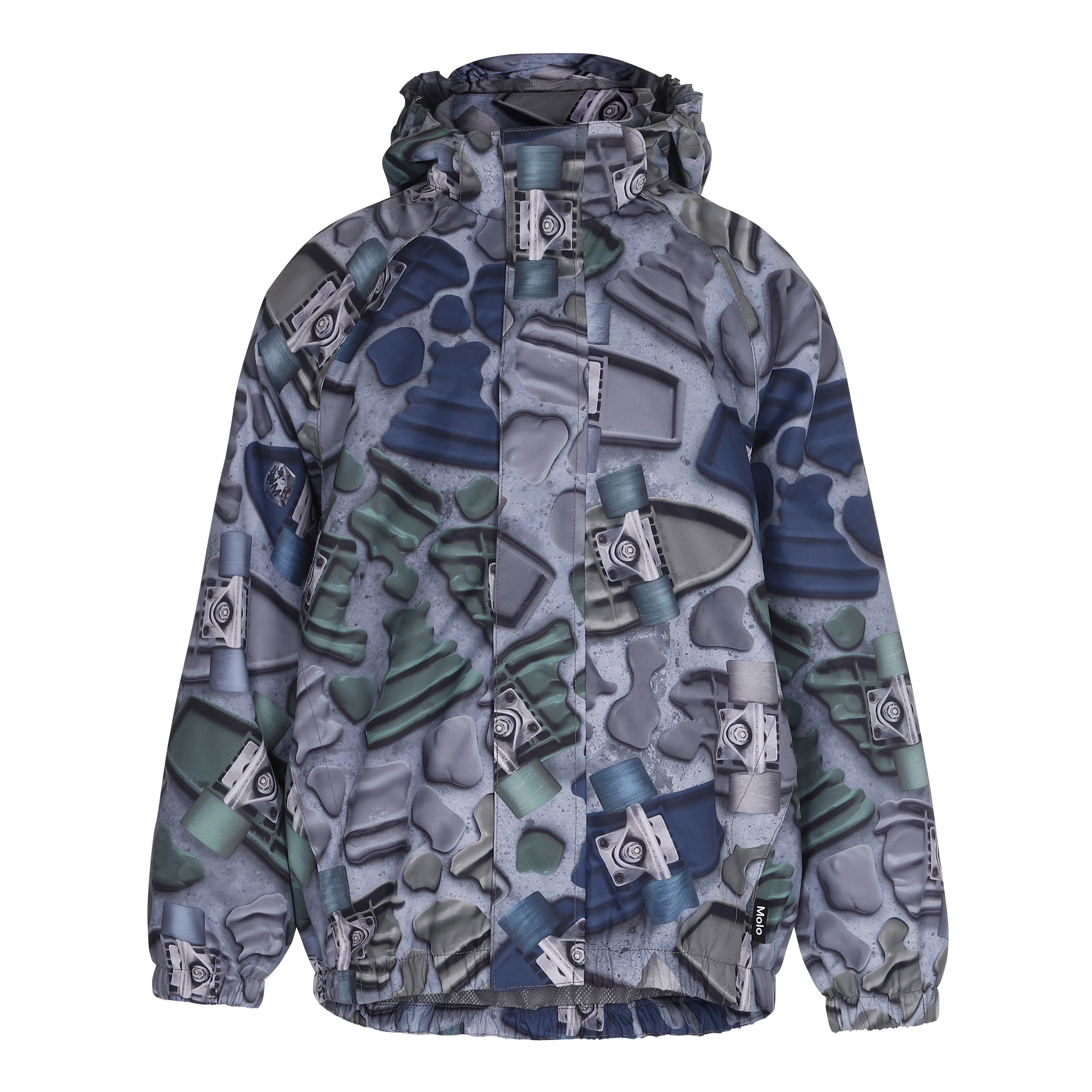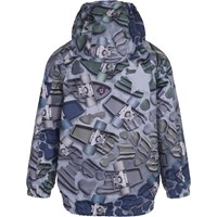 Waiton is een lichtgewicht en functioneel regenjas in Molo's ‘Broken Boards’ print. Waiton heeft een ritssluiting om te beschermen tegen wind en regen, getapte naden en een afneembare capuchon, twee zakken aan de voorkant en elastiek aan de capuchon, mouwen en onderkant. Het jack heeft molo's iconische ster reflectoren aan de achterkant voor betere zichtbaarheid in het donker. Dit product heeft een waterbestendige, PFC-vrije oppervlaktebehandeling (bevat bijvoorbeeld geen PFOS, PFOA, enz.). Waterkolomdruk: 5.000mm. Ademend: 5.000