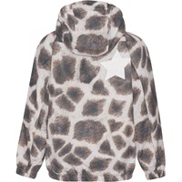 Waiton is een lichtgewicht en functionele regenjas in een giraf print met nylon voering. Waiton heeft een afgedekte ritssluiting ter bescherming tegen wind en regen, getapete naden en een afneembare capuchon, twee voorzakken en elastiek aan de capuchon, mouwen en onderkant. De jas heeft Molo`s iconische sterrelfector op de achterkant voor betere zichtbaarheid in het donker. Een van de grootste voordelen van deze regenkleding is dat het ademend is, dus een hoge mate van activiteit resulteert niet in opgesloten vocht aan de binnenkant. Dit product heeft een waterbestendige, PFC-vrije oppervlaktebehandeling (Bevat bijvoorbeeld geen PFOS, PFOA, etc). Waterkolomdruk: 5.000 mm. ademend: 5.000 g/m2/24u.
