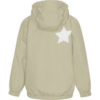 Waiton is een beige lichtgewicht en functionele regenjas met nylon voering. Waiton heeft een afgedekte ritssluiting ter bescherming tegen wind en regen, getapete naden en een afneembare capuchon, twee voorzakken en elastiek aan de capuchon, mouwen en onderkant. De jas heeft Molo`s iconische sterreflector op de rug voor betere zichtbaarheid in het donker. Een van de grootste voordelen van Waiton is dat het ademend is, dus een hoge mate van activiteit resulteert niet in opgesloten vocht aan de binnenkant. Dit product heeft een waterbestendige, PFC-vrije oppervlaktebehandeling (Bevat bijvoorbeeld geen PFOS, PFOA, etc). Waterkolomdruk: 5.000 mm. ademend: 5.000 g/m2/24u.