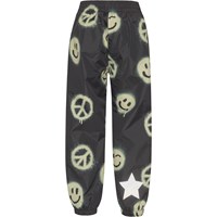 Waits is een lichtgewicht en functionele regenbroek in het zwart met een print van gele smiley’s. Het heeft getapete naden en elastiek aan de pijpen en taille, die kunnen worden aangepast. De broek heeft Molo`s iconische sterreflector op één pijp. Een van de grootste voordelen van deze regenkleding is dat het ademend is, dus een hoge mate van activiteit resulteert niet in opgesloten vocht aan de binnenkant. Dit product heeft een waterbestendige, PFC-vrije oppervlaktebehandeling (Bevat bijvoorbeeld geen PFOS, PFOA, etc). Waterkolomdruk: 5.000 mm. ademend: 5.000 g/m2/24u.