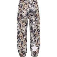Waits is een kaki lichtgewicht en functionele regenbroek met een schattige hondenprint. De broek heeft getapete naden, verstelbaar elastiek rond de taille en enkels en Molo's iconische sterreflector op één been. Dit product heeft als groot voordeel dat het ademend is, dus een hoog activiteitsniveau maakt de broek van binnen niet nat. Dit product heeft een waterbestendige, PFC-vrije oppervlaktebehandeling (bevat bijvoorbeeld geen PF OS, PFOA, enz.). Waterkolomdruk: 5.000 mm. Ademend: 5.000 g/m2/24 uur.