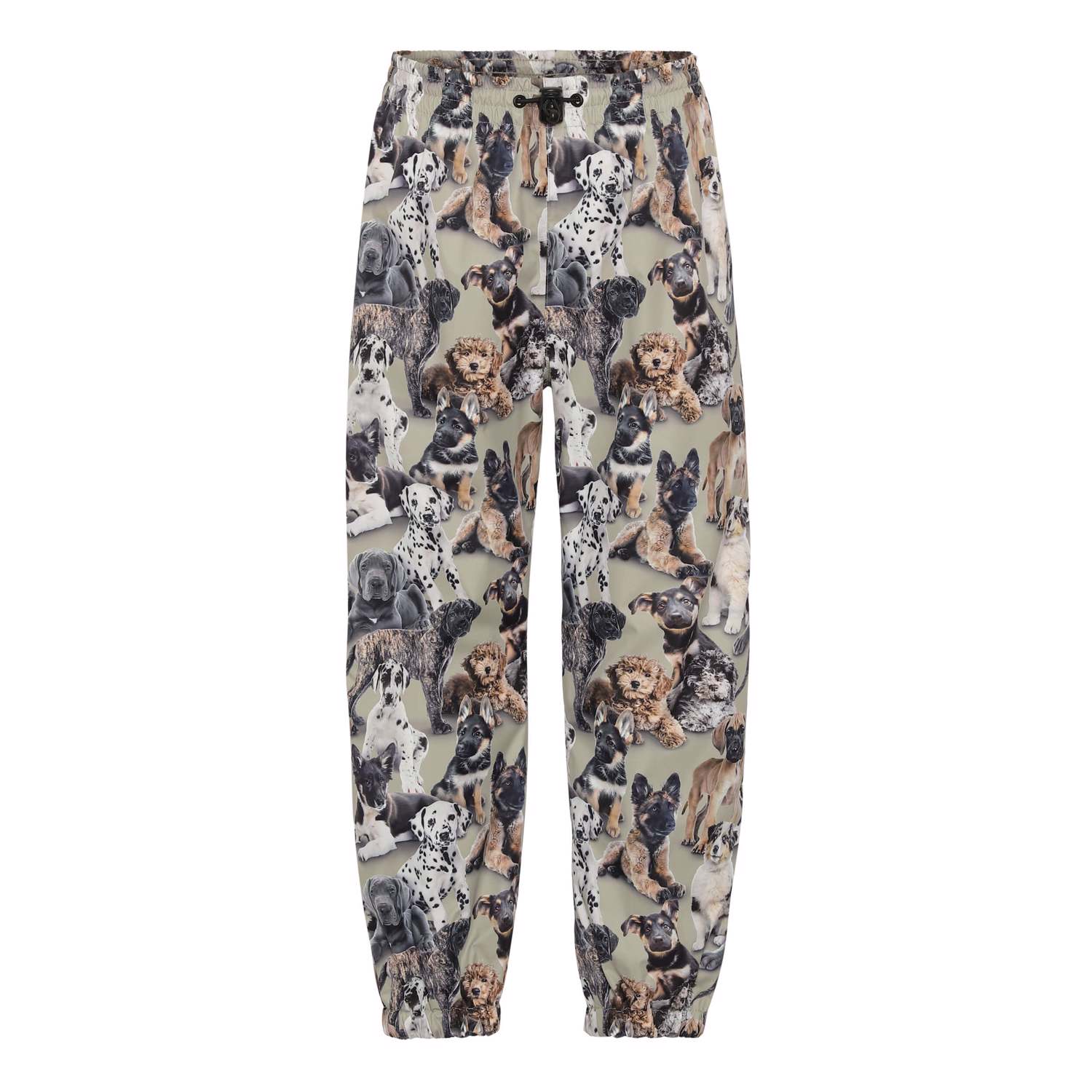 Waits is een kaki lichtgewicht en functionele regenbroek met een schattige hondenprint. De broek heeft getapete naden, verstelbaar elastiek rond de taille en enkels en Molo's iconische sterreflector op één been. Dit product heeft als groot voordeel dat het ademend is, dus een hoog activiteitsniveau maakt de broek van binnen niet nat. Dit product heeft een waterbestendige, PFC-vrije oppervlaktebehandeling (bevat bijvoorbeeld geen PF OS, PFOA, enz.). Waterkolomdruk: 5.000 mm. Ademend: 5.000 g/m2/24 uur.