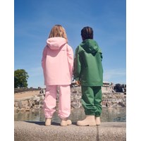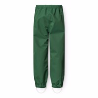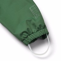 Groene wind- en waterdichte regenbroek van duurzaam en gerecycled polyester. De broek heeft een normale pasvorm, een verstelbare elastische tailleband, afneembare en verstelbare rubberen banden met Molo-logo en een reflector aan de onderkant van de pijp. De naden zijn waterdicht en zorgen ervoor dat wind en water buiten blijven.