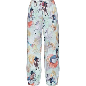 Waits is een lichtgewicht en functionele regenbroek in lichtblauw met een zeepaardenprint. De broek heeft elastiek aan de pijpen en Molo's iconische reflecterende ster op één been. De regenbroek is geschikt om in alle weersomstandigheden te dragen, omdat de stof waterdicht en ademend is en het heeft getapete naden. Dit product heeft een waterafstotende, PFC-vrije oppervlaktebehandeling (bevat bijvoorbeeld geen PFOS, PFOA, enz.) Waterkolomdruk: 5.000 mm. ademend: 5.000 g / m2 / 24 uur.