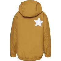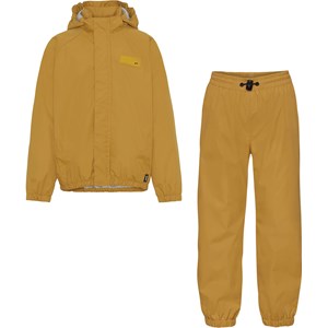 Whalley is ichtgewicht en functionele regenkleding in een prachtige honingkleur. De jas heeft een afgedekte ritssluiting ter bescherming tegen wind en regen, getapete naden, afneembare capuchon en twee voorzakken. De broek heeft elastiek in de taille en pijpen. Zowel de jas als de broek hebben Molo's iconische sterreflector op de rug. Dit regenpak heeft een waterafstotende, PFC-vrije oppervlaktebehandeling (bevat bijvoorbeeld geen PFOS, PFOA, etc). Waterkolomdruk: 5.000 mm. ademend: 5.000 g / m2 / 24 uur.