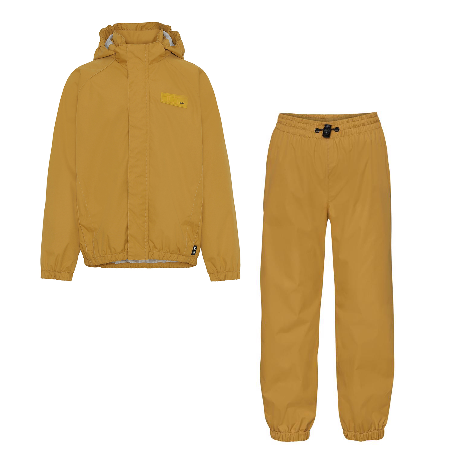 Whalley is ichtgewicht en functionele regenkleding in een prachtige honingkleur. De jas heeft een afgedekte ritssluiting ter bescherming tegen wind en regen, getapete naden, afneembare capuchon en twee voorzakken. De broek heeft elastiek in de taille en pijpen. Zowel de jas als de broek hebben Molo's iconische sterreflector op de rug. Dit regenpak heeft een waterafstotende, PFC-vrije oppervlaktebehandeling (bevat bijvoorbeeld geen PFOS, PFOA, etc). Waterkolomdruk: 5.000 mm. ademend: 5.000 g / m2 / 24 uur.