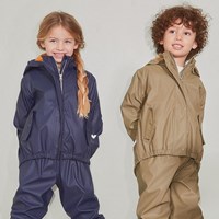 Zan is een kaki regenjas in een klassieke zachte rubberen kwaliteit. Het heeft een opvallende contrastkleurige binnenkant. Zan heeft een afneembare capuchon, twee voorzakken en een reflector op de achterkant van een mouw zodat het kind in het donker beter zichtbaar is.. Dit product heeft een waterbestendige, PFC-vrije oppervlaktebehandeling (bevat bijvoorbeeld geen PFOS, PFOA, enz.). Waterkolomdruk: 8.000 mm.