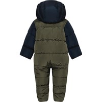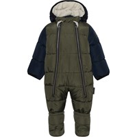 Hebe is een warme baby skipak of kinderwagenpak in groen met donkerblauwe mouwen. Het heeft een afneembare capuchon en twee ritsen aan de voorkant om het aan- en uittrekken gemakkelijk te maken. Het skipak heeft afneembare slofjes en mouwen die naar beneden kunnen worden getrokken voor wanten. De buitenstof is gemaakt van een ademende en wind- en waterdichte stof en de voering is 100% gerecycled. Het heeft geen getapete naden. Dit product heeft een waterbestendige, PFC-vrije oppervlaktebehandeling (bevat bijvoorbeeld geen PFOS, PFOA, enz.).