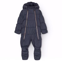 Waterafstotend donkerblauw baby skipak van gerecycled polyester. Het skipak is geschikt voor koudere dagen in de kinderwagen. Het heeft twee ritsen aan de voorkant, waardoor het gemakkelijk aan en uit te trekken is. Daarnaast heeft het een afneembare capuchon en kleine afneembare slofjes die kunnen worden vastgeknoopt en losgemaakt. Het skipak heeft ook een fleece voering en elastiek in de mouw- en beenopeningen, waardoor wanten, sokken en laarzen op hun plaats blijven en beschermen tegen wind en weer.
