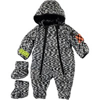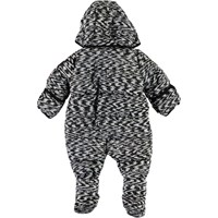 Hebe is een warm babypak of kinderwagenpak in de 'Interference'-print en gemaakt van 100% gerecycled polyester gemaakt van plastic flessen. Het heeft een afneembare capuchon, twee ritsen voor het makkelijk aantrekken, afneembare slofjes en mouwen die verlengd kunnen worden om als wanten te dienen. Het skipak is gemaakt van een winddichte, waterdichte en ademende kwaliteit met 3M ™ Thinsulate ™, maar zonder getapete naden. Dit product heeft een waterbestendige, PFC-vrije oppervlaktebehandeling (Bevat geen PFOS, PFOA, enz. ).