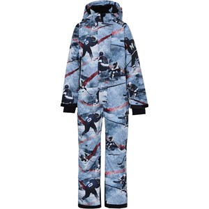 Hux is een skipak in een ijshockeyprint in blauwe en bordeaux rode kleuren met veel functionele details. Het is perfect om te skiën. Het skipak heeft een afneembare capuchon, een ritssluiting aan de voorkant met bescherming, reflectoren op de mouwen en pijpen, een sneeuwflap aan de pijpen met ruimte voor skischoenen en rubberen bandjes aan de voeten. Hux heeft ook ritszakken aan de voorkant en een zak op de mouw voor een skipas. Dit skipak is gemaakt van een winddichte, waterdichte en ademende kwaliteit en heeft 3M ™ Thinsulate ™. Het heeft hoogwaardig fleece op kwetsbare plaatsen en getapete naden. Dit product heeft een waterbestendige, PFC-vrije oppervlaktebehandeling (bevat geen PFOS, PFOA, enz.). De waterkolomdruk en het ademend vermogen is verbeterd en is nu: waterkolomdruk 15.000 mm en ademend vermogen: 15.000 g / m2 / 24 uur.