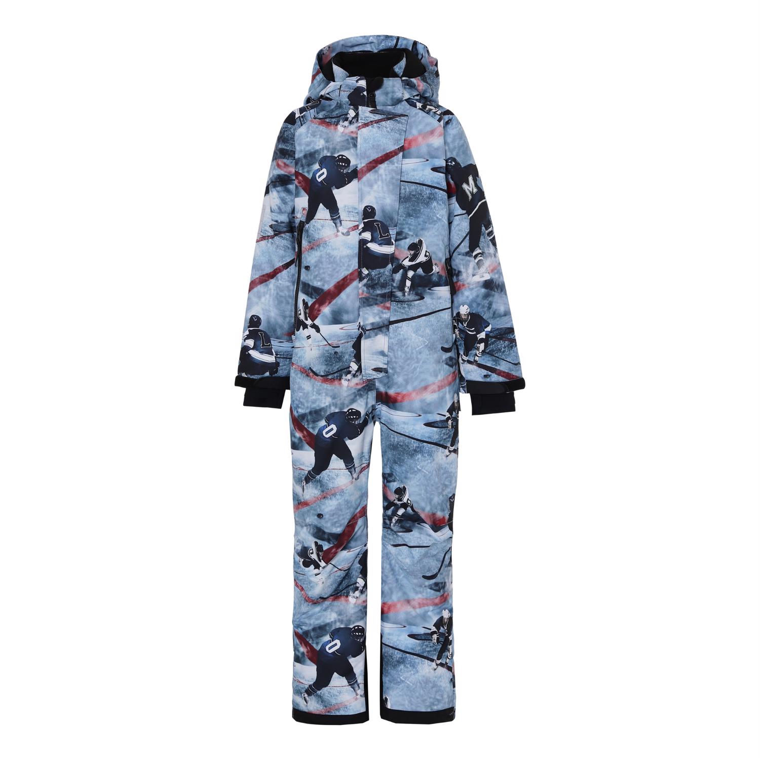 Hux is een skipak in een ijshockeyprint in blauwe en bordeaux rode kleuren met veel functionele details. Het is perfect om te skiën. Het skipak heeft een afneembare capuchon, een ritssluiting aan de voorkant met bescherming, reflectoren op de mouwen en pijpen, een sneeuwflap aan de pijpen met ruimte voor skischoenen en rubberen bandjes aan de voeten. Hux heeft ook ritszakken aan de voorkant en een zak op de mouw voor een skipas. Dit skipak is gemaakt van een winddichte, waterdichte en ademende kwaliteit en heeft 3M ™ Thinsulate ™. Het heeft hoogwaardig fleece op kwetsbare plaatsen en getapete naden. Dit product heeft een waterbestendige, PFC-vrije oppervlaktebehandeling (bevat geen PFOS, PFOA, enz.). De waterkolomdruk en het ademend vermogen is verbeterd en is nu: waterkolomdruk 15.000 mm en ademend vermogen: 15.000 g / m2 / 24 uur.