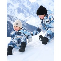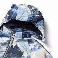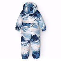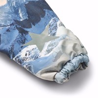 Warme skipak voor baby's en peuters van gerecycled polyester met een print van een winterlandschap in tinten blauw. Het skipak heeft een afneembare gevoerde capuchon en een extra lange en waterdichte rits aan de voorkant, om sneeuw, wind en water buiten te houden en het gemakkelijk aan te trekken. Het skipak heeft elastiek rond de taille, mouwen en broekspijpen om sneeuw, regen en wind buiten te houden en om wanten en laarzen niet te verliezen. Het skipak heeft reflectoren op de zakken en mouwen en een grote reflector in de vorm van een ster op het been om de zichtbaarheid in het verkeer te vergroten. Het skipak heeft gevoerde voorzakken en een verstelbare elastiek in de taille aan de binnenkant voor vorm en aansluiting rond het lichaam.