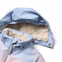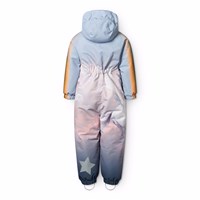 Waterafstotende pastelkleurige skipak met witte pegasus gemaakt van gerecycled polyester. De skipak heeft ritssluitingen, een afneembare gevoerde capuchon met windflap en een lange rits aan de voorkant voor het gemakkelijk aan- en uittrekken. Elastiek rond de mouwen en pijpen houdt sneeuw, regen en wind buiten en het zorgt ervoor dat wanten en laarzen op hun plaats blijven. De skipak is voorzien van een sterreflector op de pijp voor extra zichtbaarheid in het verkeer en de intern verstelbare taille-elastiek zorgt voor een strakke en comfortabele pasvorm rond het lichaam.