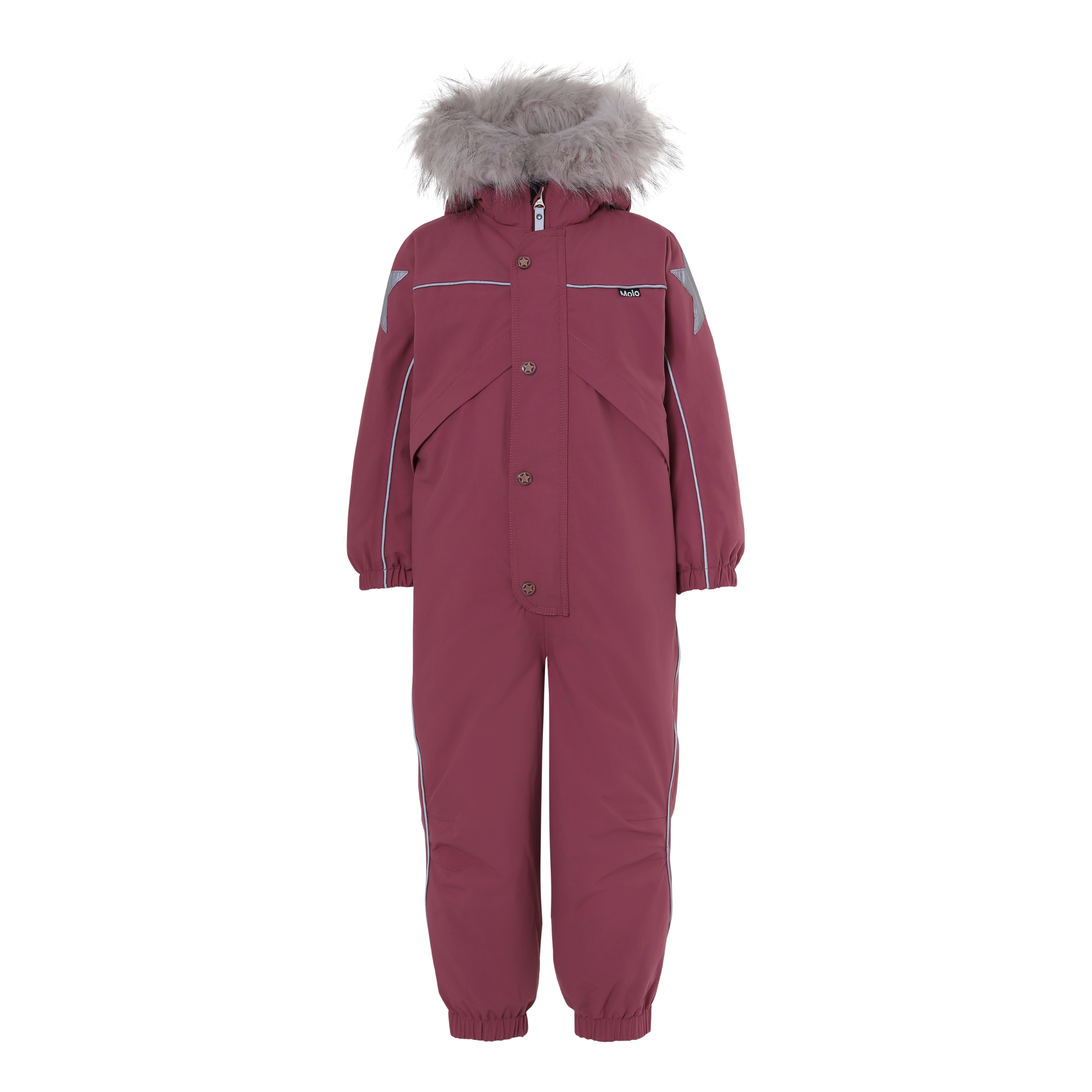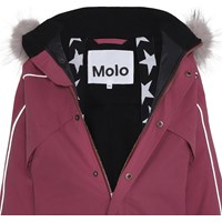 Polaris is een Molo-favoriet voor koud weer en is nu gerecycled! Polaris Fur Recycled is een functioneel bordeaux rode skipak met een nepbont kraag, reflecterende biezen en Molo's iconische sterreflectoren op de mouwen en pijpen. Het heeft een afneembare capuchon, een ritssluiting aan de voorkant met bescherming, elastiek aan de achterkant, een sneeuwflap aan de pijpen en rubberen bandjes onder de voeten. Het skipak is winddicht en waterdicht en heeft ademend 3M ™ Thinsulate ™. Het heeft hoogwaardige fleece op kwetsbare plaatsen en getapete naden. Het buitenmateriaal is gemaakt van 59% gerecycled nylon uit afval. Dit product heeft een waterbestendige, PFC-vrije oppervlaktebehandeling (bevat geen PFOS, PFOA, enz.). Waterkolomdruk: 15.000 mm. Ademend vermogen: 15.000 g / m2 / 24 uur.