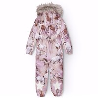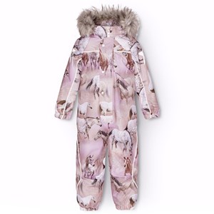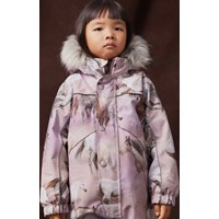 Skipak van gerecycled polyester voor een koude winter met een prachtige paardenprint in verschillende tinten roze en paars op een dromerige achtergrond. Het skipak heeft een afneembare gevoerde capuchon en een rits met een flap om wind en water buiten te houden. Er zit elastiek in de taille, mouwen en pijpopeningen om sneeuw, regen en wind buiten te houden. Het skipak heeft reflecterende tape langs de zijnaden, rond de capuchon en grote ster-vormige reflectoren op zowel de mouwen als de pijpen, om de zichtbaarheid in het verkeer te vergroten. Het pak is gevoerd met 3M™ Thinsulate™, wat je kind meer bewegingsvrijheid geeft, en heeft gevoerde voorzakken met waterdichte ritsen.