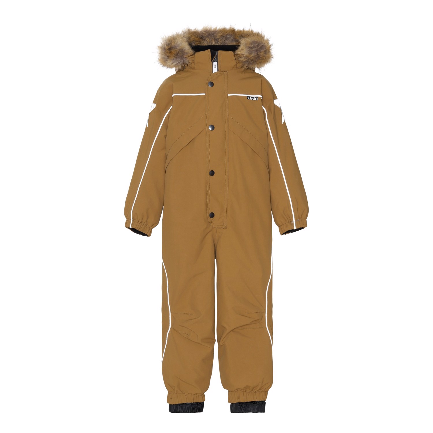 Polaris Fur is een van Molo's favorieten voor echt koud weer. Polaris is een bruin functioneel skipak met reflecterende biezen. Het is perfect voor extreem koude dagen maar ook voor gewone winterdagen. Het hoog ademend vermogen helpt bij het reguleren van de lichaamstemperatuur van het kind zodat het niet te koud of te warm wordt. Op warmere winterdagen kan het kind het skipak dragen met een dunne onderlaag en op extreem koude dagen kan hij of zij een extra laag aantrekken. Polaris is ook een goede keuze voor minder actieve momenten. Het skipak heeft reflecterende biezen en een afneembare rand van imitatiebont. Polaris heeft een afneembare capuchon, een afgedekte ritssluiting aan de voorkant en Molo's iconische sterreflectoren op de mouwen en pijpen. Het heeft sneeuwflappen aan de pijpen en rubberen bandjes. Polaris is, naast al zijn andere kwaliteiten, gemaakt van gedeeltelijk gerecyclede materialen. De buitenstof is gemaakt van 59% gerecycled nylon, de 3M™ Thinsulate™ voering is gemaakt van 83% gerecycled polyester en de binnenstof is gemaakt van 100% gerecycled polyester. Het skipak is wind-, waterdicht, ademend en heeft getapete naden. Dit product heeft een waterbestendige, PFC-vrije oppervlaktebehandeling (Bevat bijvoorbeeld geen PFOS, PFOA, etc). Hierdoor heeft het de Best-in-Test-status gekregen. De waterkolomdruk en het ademend vermogen zijn verbeterd en zijn nu tot 15.000 mm kolomdruk en ademend vermogen bij 15.000 g/m2/24 uur.