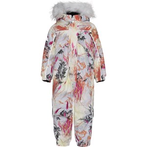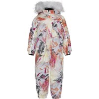 Polaris Fur is een favoriet van Molo als het weer erg koud wordt. Polaris is ,naast al zijn vele bekende kwaliteiten, nu ook gemaakt van gedeeltelijk gerecyclede materialen. Dit betekent dat de buitenstof 51% gerecycled is en de voering en tussenvoering 100% gemaakt is van gerecycled polyester. Polaris is een functionele lichtblauwe skipak met kleurrijke takken. Het heeft reflecterende biezen en afneembare rand van nepbont. Het skipak heeft ook een afneembare capuchon, een ritssluiting met overslag en drukknopen aan de voorkant, Molo's iconische sterreflectoren op de mouwen en pijpen. Het heeft sneeuwflappen bij de pijpen en rubberen banden voor onder de voeten. Het skipak is gemaakt van een ademende en wind- en waterdichte stof en heeft getapete naden. Dit product heeft een waterbestendige, PFC-vrije oppervlaktebehandeling (bevat bijvoorbeeld geen PFOS, PFOA, etc) en daarom is het skipak 'Best-in-Test' genoemd. De waterkolomdruk en het ademend vermogen zijn sterk verbeterd en zijn nu: waterkolomdruk: 15.000 mm en ademend: 15.000 g / m2 / 24 uur.