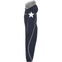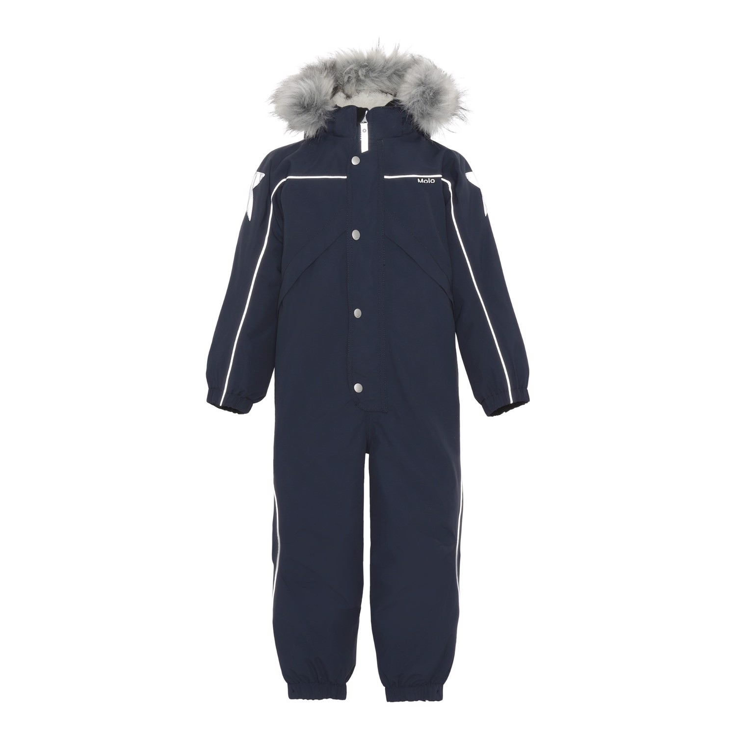 Polaris Fur is een van Molo's favorieten voor echt koud weer. Polaris is een blauwe functioneel skipak met reflecterende biezen. Het is perfect voor extreem koude dagen maar ook voor gewone winterdagen. Het hoog ademend vermogen helpt bij het reguleren van de lichaamstemperatuur van het kind zodat het niet te koud of te warm wordt. Op warmere winterdagen kan het kind het skipak dragen met een dunne onderlaag en op extreem koude dagen kan hij of zij een extra laag aantrekken. Polaris is ook een goede keuze voor minder actieve momenten. Het skipak heeft reflecterende biezen en een afneembare rand van imitatiebont. Polaris heeft een afneembare capuchon, een afgedekte ritssluiting aan de voorkant en Molo's iconische sterreflectoren op de mouwen en pijpen. Het heeft sneeuwflappen aan de pijpen en rubberen bandjes. Polaris is, naast al zijn andere kwaliteiten, gemaakt van gedeeltelijk gerecyclede materialen. De buitenstof is gemaakt van 59% gerecycled nylon, de 3M™ Thinsulate™ voering is gemaakt van 83% gerecycled polyester en de binnenstof is gemaakt van 100% gerecycled polyester. Het skipak is wind-, waterdicht, ademend en heeft getapete naden. Dit product heeft een waterbestendige, PFC-vrije oppervlaktebehandeling (Bevat bijvoorbeeld geen PFOS, PFOA, etc). Hierdoor heeft het de Best-in-Test-status gekregen. De waterkolomdruk en het ademend vermogen zijn verbeterd en zijn nu tot 15.000 mm kolomdruk en ademend vermogen bij 15.000 g/m2/24 uur.