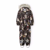 Wind- en waterdichte donkergroene skipak met bloemenprint gemaakt van gerecycled polyester. Het skipak heeft een afneembare gevoerde capuchon met afneembare imitatiebont, voorzakken met windkleppen, voorritsen met stormkleppen en kinbescherming om te voorkomen dat de huid vast komt te zitten. Het skipak heeft interne elastische banden en elastiek rond de opening van de mouwen en pijpen om ervoor te zorgen dat het goed past en sneeuw, regen en wind buiten houdt. Het skipak is uitgerust met reflecterende tape en twee grote sterren op de pijpen voor zichtbaarheid in het verkeer. Bovendien is het skipak gevoerd met gerecycled polyester fleece op blootgestelde gebieden en gevoerd met 3M™ Thinsulate™, wat helpt om warmte vast te houden.