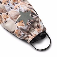 Wind- en waterdichte skipak met een print van vosjes in bruine tinten gemaakt van gerecycled polyester. Het skipak heeft een afneembare gevoerde capuchon met afneembare imitatiebont, voorzakken met windkleppen, voorritsen met stormkleppen en kinbescherming om te voorkomen dat de huid vast komt te zitten. Het skipak heeft interne elastische banden en elastiek rond de opening van de mouwen en pijpen om ervoor te zorgen dat het goed past en sneeuw, regen en wind buiten houdt. Het skipak is uitgerust met reflecterende tape en twee grote sterren op de pijpen voor zichtbaarheid in het verkeer. Bovendien is het skipak gevoerd met gerecycled polyester fleece op blootgestelde gebieden en gevoerd met 3M™ Thinsulate™, wat helpt om warmte vast te houden.