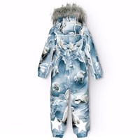 Skipak van gerecycled polyester voor een koude winter met een coole print van speelse ijsberen tussen de ijsschoten in verschillende tinten blauw. Het skipak heeft een afneembare gevoerde capuchon en een rits met een flap om wind en water buiten te houden. Er zit elastiek in de taille, mouwen en pijpopeningen om sneeuw, regen en wind buiten te houden. Het skipak heeft reflecterende tape langs de zijnaden, rond de capuchon en grote ster-vormige reflectoren op zowel de mouwen als de pijpen, om de zichtbaarheid in het verkeer te vergroten. Het pak is gevoerd met 3M™ Thinsulate™, wat je kind meer bewegingsvrijheid geeft, en heeft gevoerde voorzakken met waterdichte ritsen.