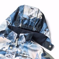 Skipak van gerecycled polyester voor een koude winter met een mooie print van de besneeuwde Alpen in verschillende tinten blauw. Het skipak heeft een afneembare gevoerde capuchon en ritsen met flappen om wind en water buiten te houden. Het heeft elastiek in de taille, mouwen en broekspijpen om sneeuw, regen en wind buiten te houden. Het skipak is uitgerust met reflectoren langs de zijnaden, rond de capuchon en grote ster-vormige reflectoren op zowel de mouwen als de broekspijpen om de zichtbaarheid in het verkeer te vergroten. Het skipak is gevoerd met 3M™ Thinsulate™, waardoor het lichtgewicht is en meer bewegingsvrijheid biedt voor je kind. Er zijn ook gevoerde voorzakken met waterdichte ritsen.