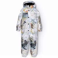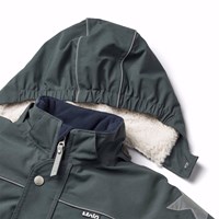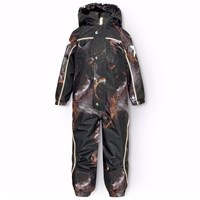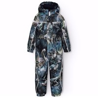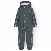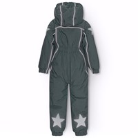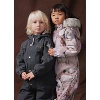 Donkergrijze skipak van gerecycled polyester voor een koude winter. Het skipak heeft een afneembare gevoerde capuchon en ritsen met flappen om wind en water buiten te houden. Het heeft elastiek in de taille, mouwen en broekspijpen om sneeuw, regen en wind buiten te houden. Het skipak is uitgerust met reflectoren langs de zijnaden, rond de capuchon en grote ster-vormige reflectoren op zowel de mouwen als de broekspijpen om de zichtbaarheid in het verkeer te vergroten. Het skipak is gevoerd met 3M™ Thinsulate™, waardoor het lichtgewicht is en meer bewegingsvrijheid biedt voor je kind. Er zijn ook gevoerde voorzakken met waterdichte ritsen.