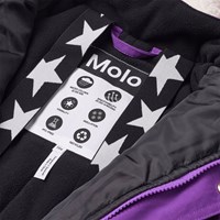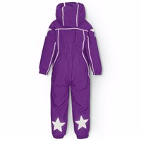 Paarse skipak van gerecycled polyester voor een koude winter. Het skipak heeft een afneembare gevoerde capuchon en ritsen met flappen om wind en water buiten te houden. Het heeft elastiek in de taille, mouwen en broekspijpen om sneeuw, regen en wind buiten te houden. Het skipak is uitgerust met reflectoren langs de zijnaden, rond de capuchon en grote ster-vormige reflectoren op zowel de mouwen als de broekspijpen om de zichtbaarheid in het verkeer te vergroten. Het skipak is gevoerd met 3M™ Thinsulate™, waardoor het lichtgewicht is en meer bewegingsvrijheid biedt voor je kind. Er zijn ook gevoerde voorzakken met waterdichte ritsen.